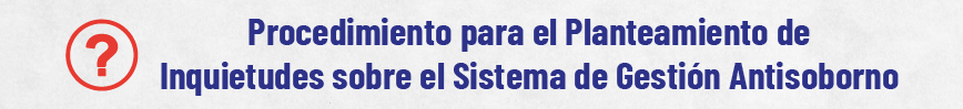 El Procedimiento de planteamiento de inquietudes sobre el soborno establece actividades para que se oriente sobre qué debe hacer una persona si se enfrenta a un problema o situación que podría involucrar el soborno, a través de una asesoría apropiada y oportuna manteniendo la confidencialidad y protección de la información.