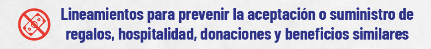 Los lineamientos han sido establecidos con el propósito de prevenir la oferta, el suministro o la aceptación de regalos, atenciones, donaciones y beneficios similares, con el fin de evitar cualquier posibilidad de soborno en todas sus formas.